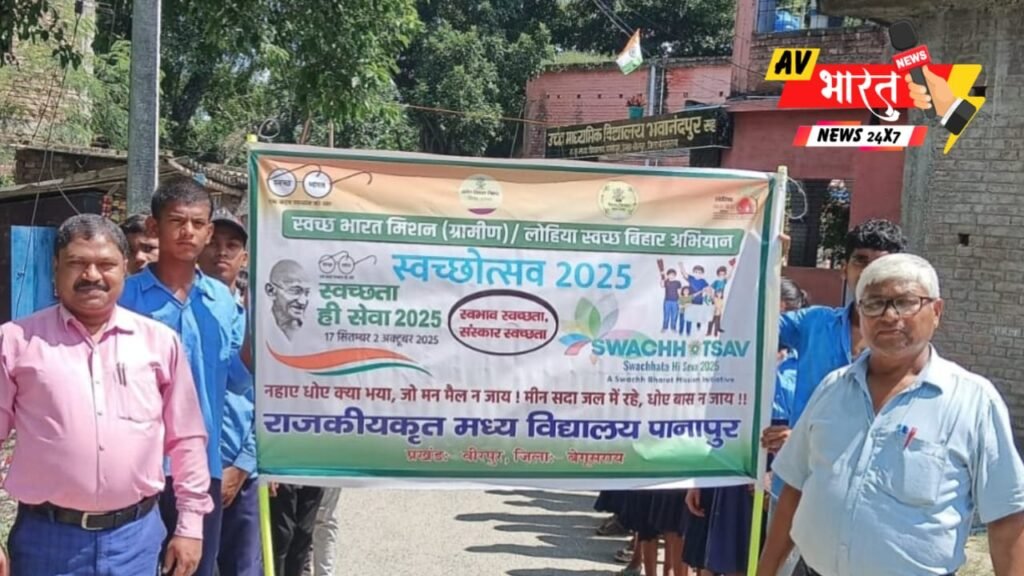 स्वच्छता पखवाड़ा के तहत बुधवार को वीरपुर प्रखंड के भवानंदपुर पंचायत स्थित मध्य विद्यालय पानापुर के स्कूली बच्चों ने प्रभात फेरी रैली निकालकर साफ-सफाई के प्रति जागरूकता फैलाई। यह रैली विद्यालय के प्रधानाध्यापक अरुण कुमार ठाकुर के नेतृत्व में विद्यालय परिसर से शुरू होकर भवानंदपुर के विभिन्न मार्गों का भ्रमण करते हुए पुनः विद्यालय में पहुंच कर संपन्न हुई।रैली के दौरान बच्चों ने स्वच्छता को लेकर नारे लगाते हुए स्थानीय लोगों और अभिभावकों को स्वच्छता अपनाने का संदेश दिया।