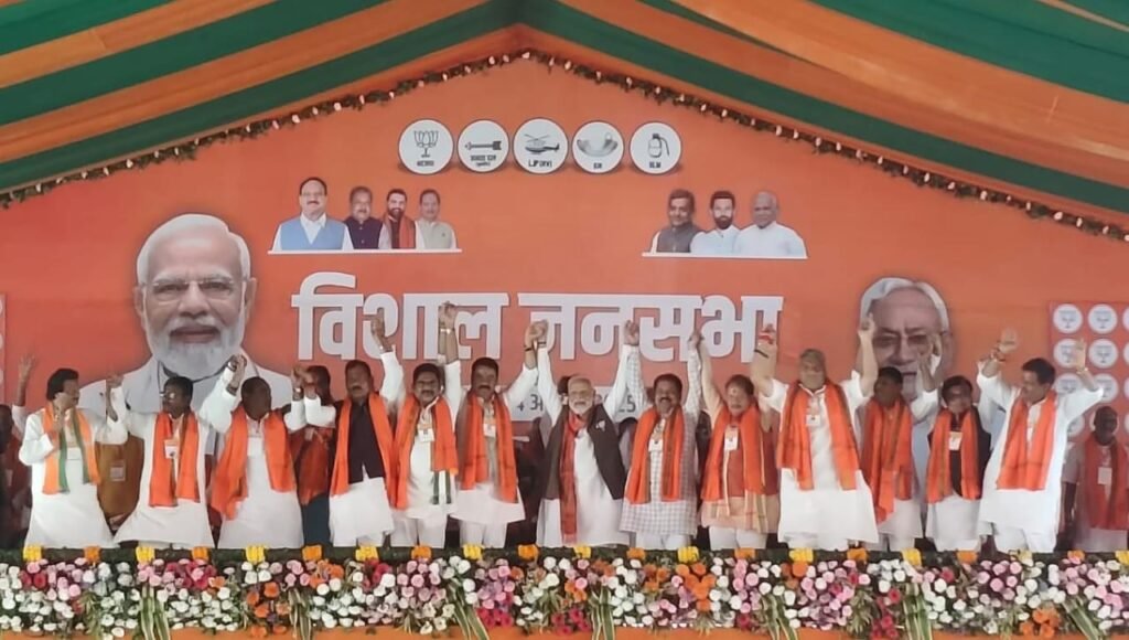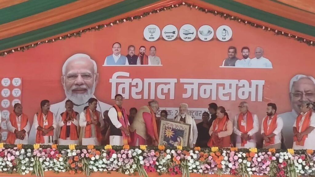 प्रधानमंत्री नरेंद्र मोदी ने मंच से नारा दिया – “नई रफ्तार से चलेगा बिहार, फिर आएगी एनडीए की सरकार।”