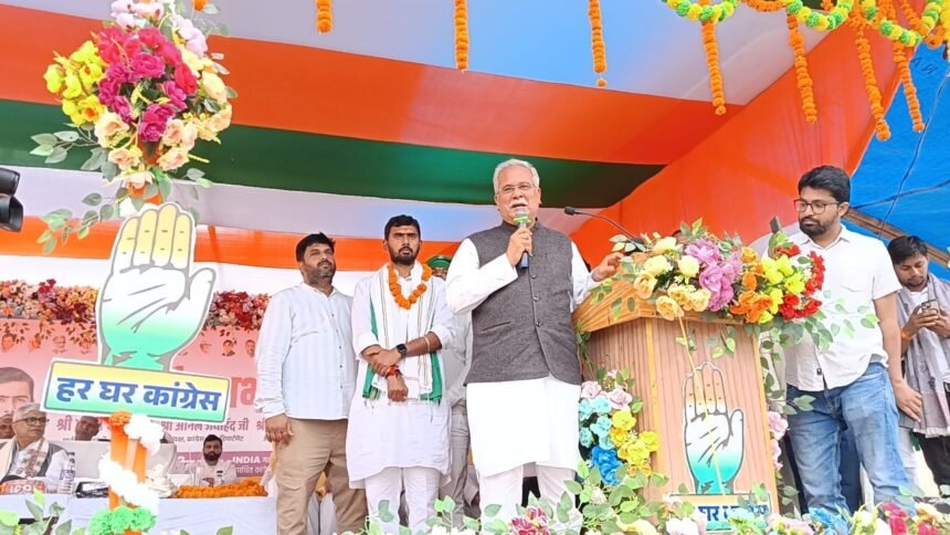 बछवाड़ा के सूर्यपुरा में कांग्रेस की आशीर्वाद सभा — भूपेश बघेल बोले, “यह चुनाव रोजगार और सम्मानपूर्ण जीवन के लिए है”