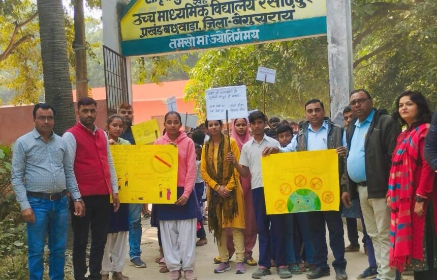 बछवाडा़ प्रखंड क्षेत्र के गुरसहाय उच्च माध्यमिक विद्यालय रसीदपुर,एवं गुरसहाय मध्य विद्यालय रसीदपुर के छात्र छात्राओं के द्वारा नशा मुक्त अभियान को लेकर गांव के विभिन्न गली मोहल्ले में प्रभातफेरी के मध्यम से लोगों को नशा के दुष्प्रभाव के बारे में बताया। स्कूली छात्र छात्राओं ने विभिन्न स्लोगन जैसे नशा मुक्त रहे बिहार सुरक्षित हो घर परिवार,हमने यह ठाना है नशा मुक्त बिहार बनाना है जो हुआ नशे का शिकार उसका उजड़ा घर परिवार आदि स्लोगन के साथ गांव के लोगों को नशा नहीं करने के लिए प्रेरित करने का काम किया।