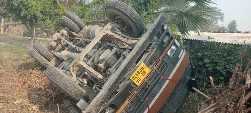 बेगूसराय संजात पथ के वीरपुर स्थित उत्सव विवाह भवन के पास गूरूवार को लगभग साढ़े आठ बजे तेज रफ्तार ट्रक के पलट जाने से रोड पर आ जा रहे लोगों में अफरातफरी मच गया। घटना की सूचना मौके पर मौजूद लोगों के द्वारा थाना को दिया गया। घटना की सूचना मिलते ही पुलिस मौके पर पहुंच मामले की तहकीकात करते हुए चौकीदार को प्रतिनियुक्त कर दिया है।