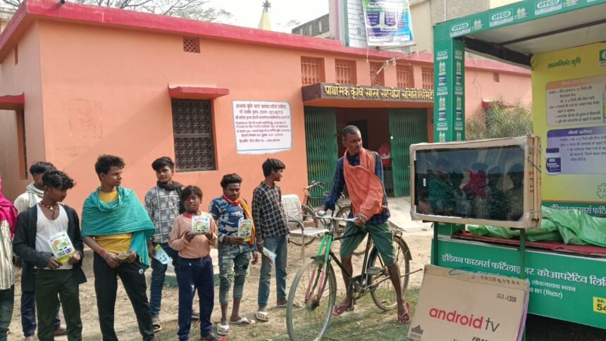 प्राथमिक कृषि साख सहयोग समिति लिमिटेड पहसारा पश्चिम के प्रांगण में आयोजित इण्डियन फार्म्स फर्टिलाइजर के क्षेत्रिय प्रबंधक बेगुसराय एवं खगड़िया जिला प्रभारी मोहित झा ने किसानों के बीच एल ई डी डिजीटल प्रचार प्रसार अभियान की शुरुआत की।