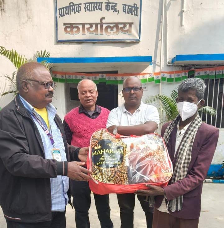 बिहार सरकार की पहल संपूर्णता अभियान 2.0 के तहत प्राथमिक स्वास्थ्य केंद्र बखरी के अंतर्गत यक्ष्मा (टीबी) रोगियों को ठंड में कंबल का वितरण किया गया।