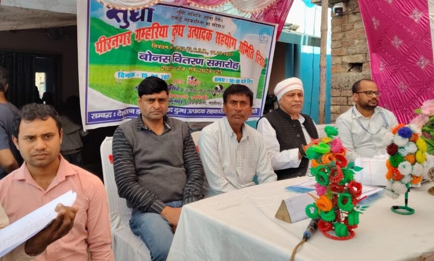किसानों के आर्थिक आधार पशुपालन है,पशु इनके आर्थिक आधार का रीढ है।उक्त बातें बरौनी डेयरी दुग्ध संघ के चैयरमैन विजय शंकर सिंह ने पीरनगर दुग्ध उत्पादक सहयोग समिति के बोनस वितरण समारोह में कहा।कार्यक्रम की अध्यक्षता भूषण महतो तथा संचालन शकील अंदाज ने किया।