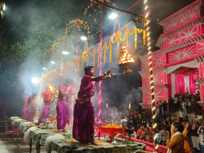प्रतिदिन बड़ी संख्या में श्रद्धालु पहुंचकर माँ दुर्गा की पूजा-अर्चना कर रहे हैं। महाआरती के दौरान पूरा वातावरण भक्तिमय हो जाता है, जहां श्रद्धालु दीप, धूप और मंत्रोच्चार के साथ आरती में शामिल होकर आध्यात्मिक आनंद का अनुभव कर रहे हैं।महाआरती की विशेष व्यवस्था माँ गंगा सेवा संस्थान, वाराणसी द्वारा की गई है, जिससे स्थानीय लोगों को काशी जैसा माहौल मिल रहा है।