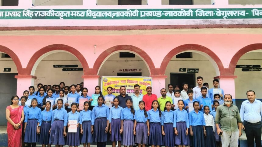 नावकोठी में मुखिया संघ के जिला महासचिव,प्रखंड अध्यक्ष सह स्थानीय मुखिया राष्ट्रपति कुमार बिडडू ने प्रगति पत्रक का वितरण किया एवं सभी वर्गों के टॉप 3 छात्र एवं छात्राओं को सम्मानित किया।
