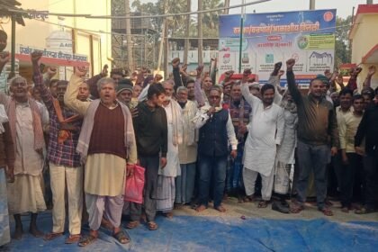 वीरपुर प्रखंड सह अंचल कार्यालय बचाओ संघर्ष समिति ने स्थानंतरण के विरोध में दिया धरना
