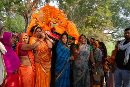 पांच दिवसीय श्रीमद भागवत कथा को लेकर वीरपुर में निकाली गई भव्य कलश शोभा यात्रा