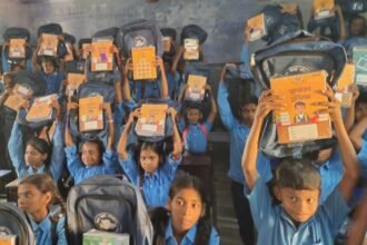 बच्चों को वितरित की गई पाठ्य सामग्री, नए बैग और कॉपियों से खुश हुए विद्यार्थी