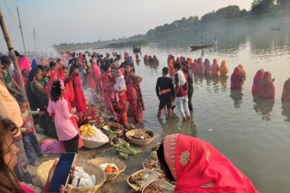 छठ व्रतियों ने अस्ताचलगामी सूर्य को दिया अर्घ्य
