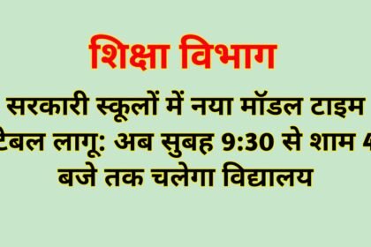 सरकारी स्कूलों में नया मॉडल टाइम टेबल लागू: अब सुबह 9:30 से शाम 4 बजे तक चलेगा विद्यालय